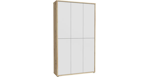 Als trendiges Ordnungs-Key-Piece bringt dieser XORA Schuhschrank (6-türig) in Hellgrau und Artisan-Eichefarben ein aufgeräumtes Ambiente in den Flur. Das stehende Garderobenmöbel (B x H: ca. 110 x 192 cm) begeistert mit seinem minimalistischen Look, der sich in unterschiedliche Einrichtungsstile einfügt. Durch die grifflose Push-to-open-Technik wirkt die Front besonders clean.