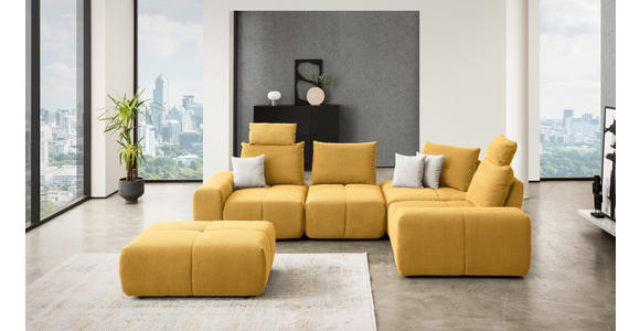 Glücksgefühle im eigenen Wohnzimmer erleben – mit Ihrem XORA Ecksofa in Currygelb klappt das mühelos.